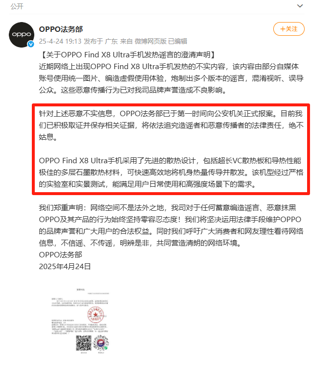 对了,最近不是有人说Find X8 Ultra拍照发热严重吗?我自己也做过对比测试,其实也就是温热而已,现在官方也出来辟谣了,并且表示要依法追究造谣者和恶意传播者的法律责任,想必现在黑子们已经慌了吧哈哈~不管怎么说,如果你也在寻找一部手感好,拍照强的手机,那么Find X8 Ultra我觉得还真是一个不错的选择!